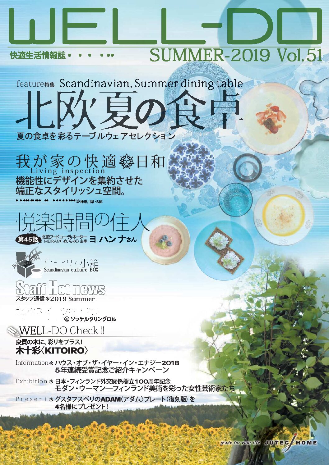 ジューテックホームがお届けする「WELL-DO」ウェルドゥは、住まいを通じてオーナー様と一生涯のお付き合いを育むための情報誌です。 北欧の暮らしに学ぶ快適なライフスタイルの提案や、住まいの性能を維持するためのメンテナンス方法、さらには季節ごとのイベント情報など、オーナー様の毎日をより豊かに、より安心に彩るコンテンツを定期的にお届けしています。