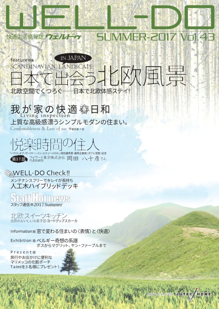 ジューテックホームがお届けする「WELL-DO」ウェルドゥは、住まいを通じてオーナー様と一生涯のお付き合いを育むための情報誌です。 北欧の暮らしに学ぶ快適なライフスタイルの提案や、住まいの性能を維持するためのメンテナンス方法、さらには季節ごとのイベント情報など、オーナー様の毎日をより豊かに、より安心に彩るコンテンツを定期的にお届けしています。