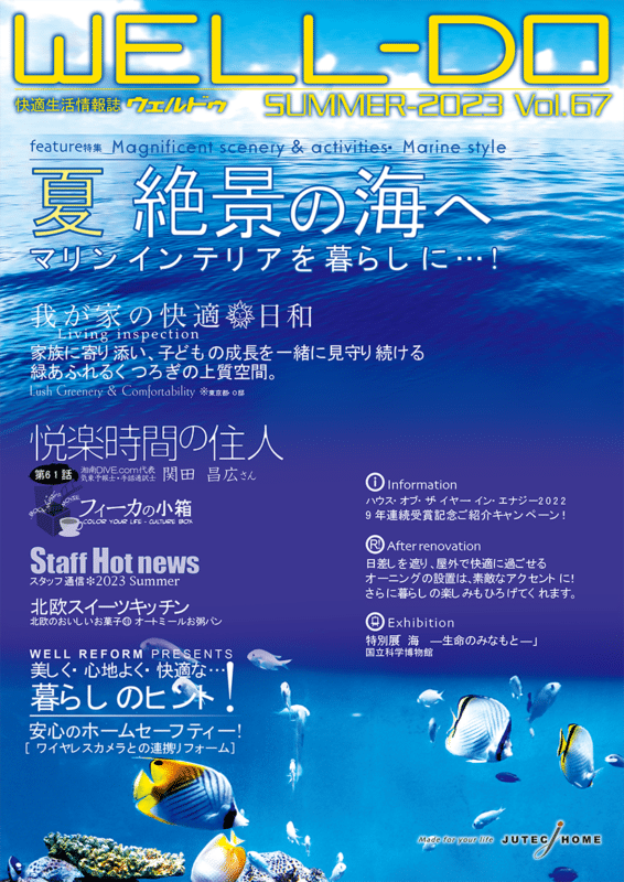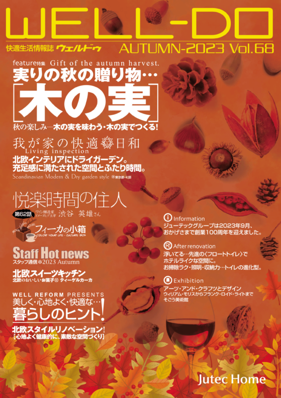ジューテックホームがお届けする「WELL-DO」ウェルドゥは、住まいを通じてオーナー様と一生涯のお付き合いを育むための情報誌です。 北欧の暮らしに学ぶ快適なライフスタイルの提案や、住まいの性能を維持するためのメンテナンス方法、さらには季節ごとのイベント情報など、オーナー様の毎日をより豊かに、より安心に彩るコンテンツを定期的にお届けしています。