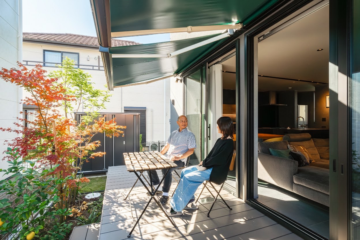 家を建てたことをきっかけに始められた趣味のサーフィンや、電動オーニング付きのウッドデッキでの優雅なコーヒータイム。