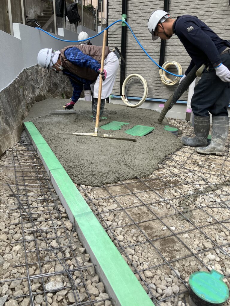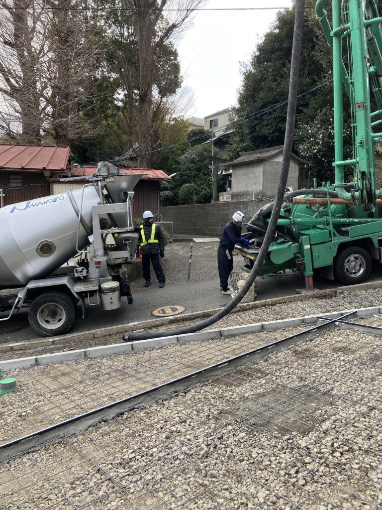 今回は、駐車場の「土間コンクリート打設」の様子をご紹介します!