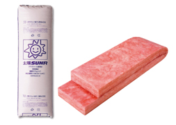 冒頭の写真に写っている、壁や斜めの天井にぎっしりと詰まったピンク色のフワフワしたもの。これが、住宅の断熱材として最もポピュラーな「高性能グラスウール」です。