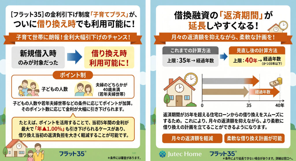 ① 借り換えでも「子育てプラス」の金利引下げが利用可能に!