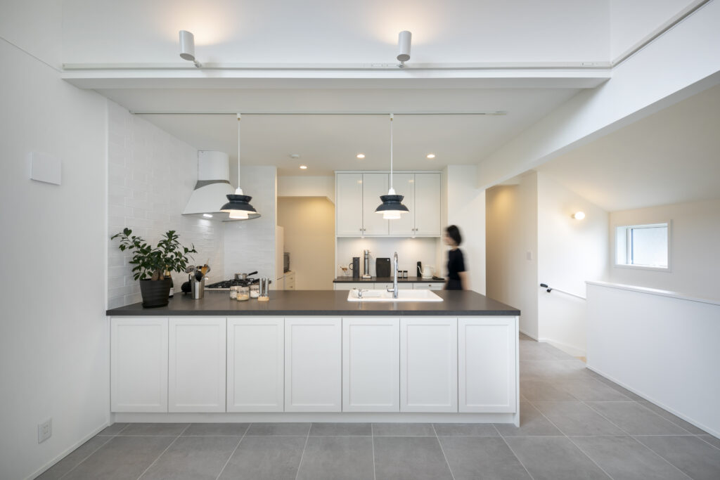 スタイリッシュなキッチンと吹き抜けの開放感がふたりのお気に入り。