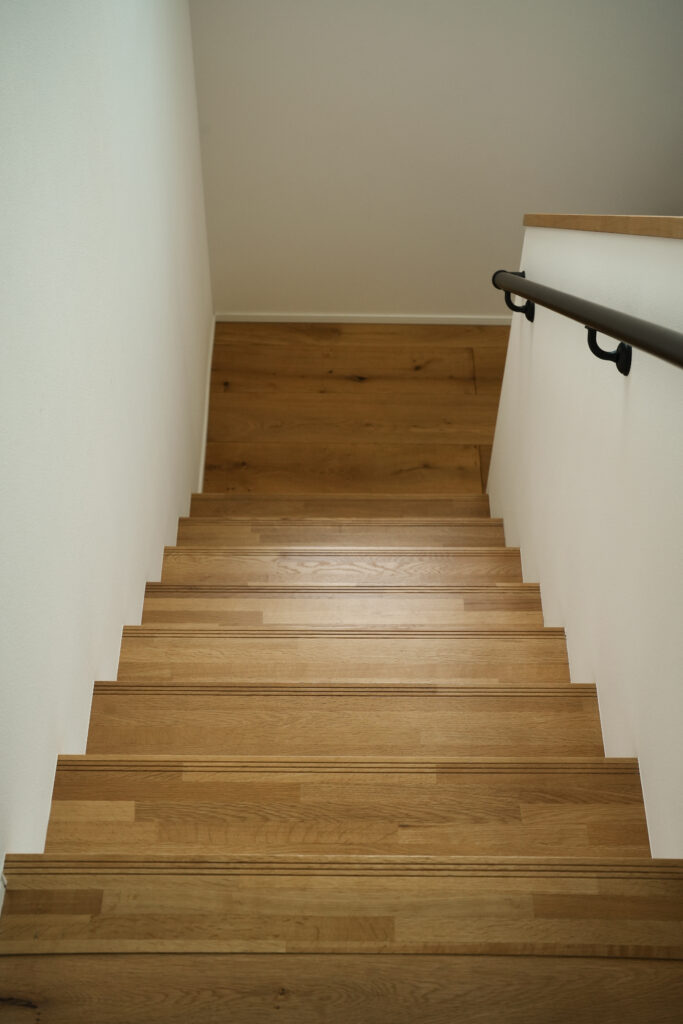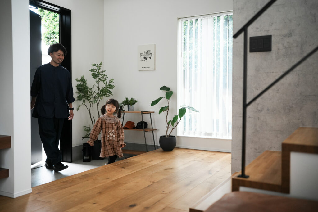 まずは、担当さんたちの人柄がよかったから!あとは、機能性や建材などの品質の良さ、自由設計(建築家、坂下さんの設計)で建てられるのが、依頼しようと思った理由のひとつです。実家が築70年ほどの古い家なので、特に高気密・高断熱には魅力を感じていました。新しい家が建つまでのあいだ実家に半年ほど同居していたのですが、ちょうど秋から冬の季節で、家の中がめちゃくちゃ寒くて。古い家なので、採光も少なくて、家の中が全体的に暗いのもあるんでしょうね。だから、高気密・高断熱で、蓄熱式温水床暖房がいい!と思ったんです。
