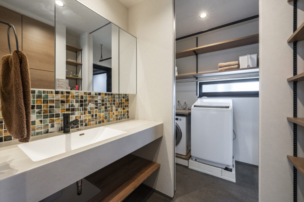 全体のデザインスタイルや、内装インテリアは、主に妻のこだわりが反映されています。自分では、一番こだわったのは、浴室です。落ち着ける色合いと、肩楽湯付きのバスタブで、毎日の疲れを解消しています。