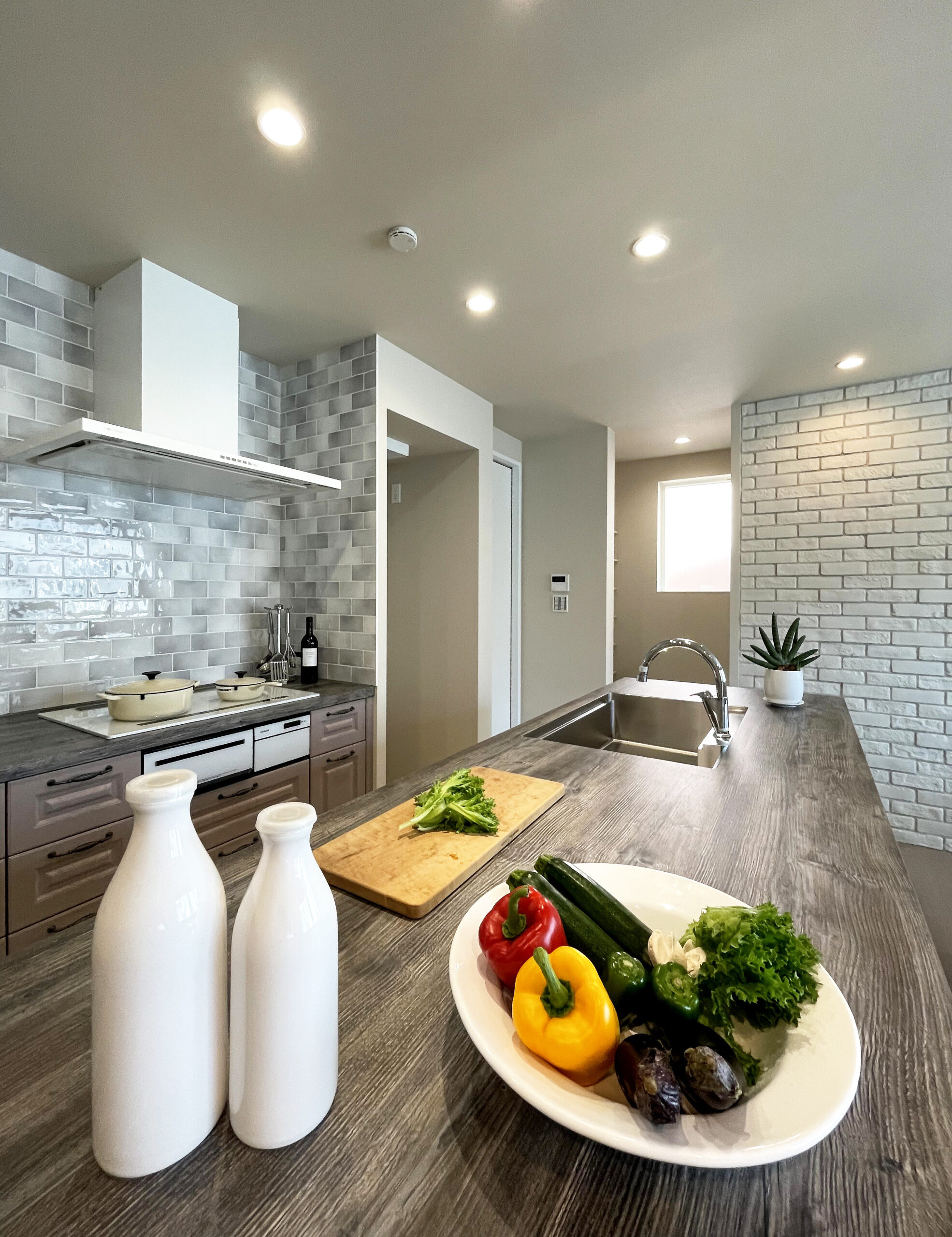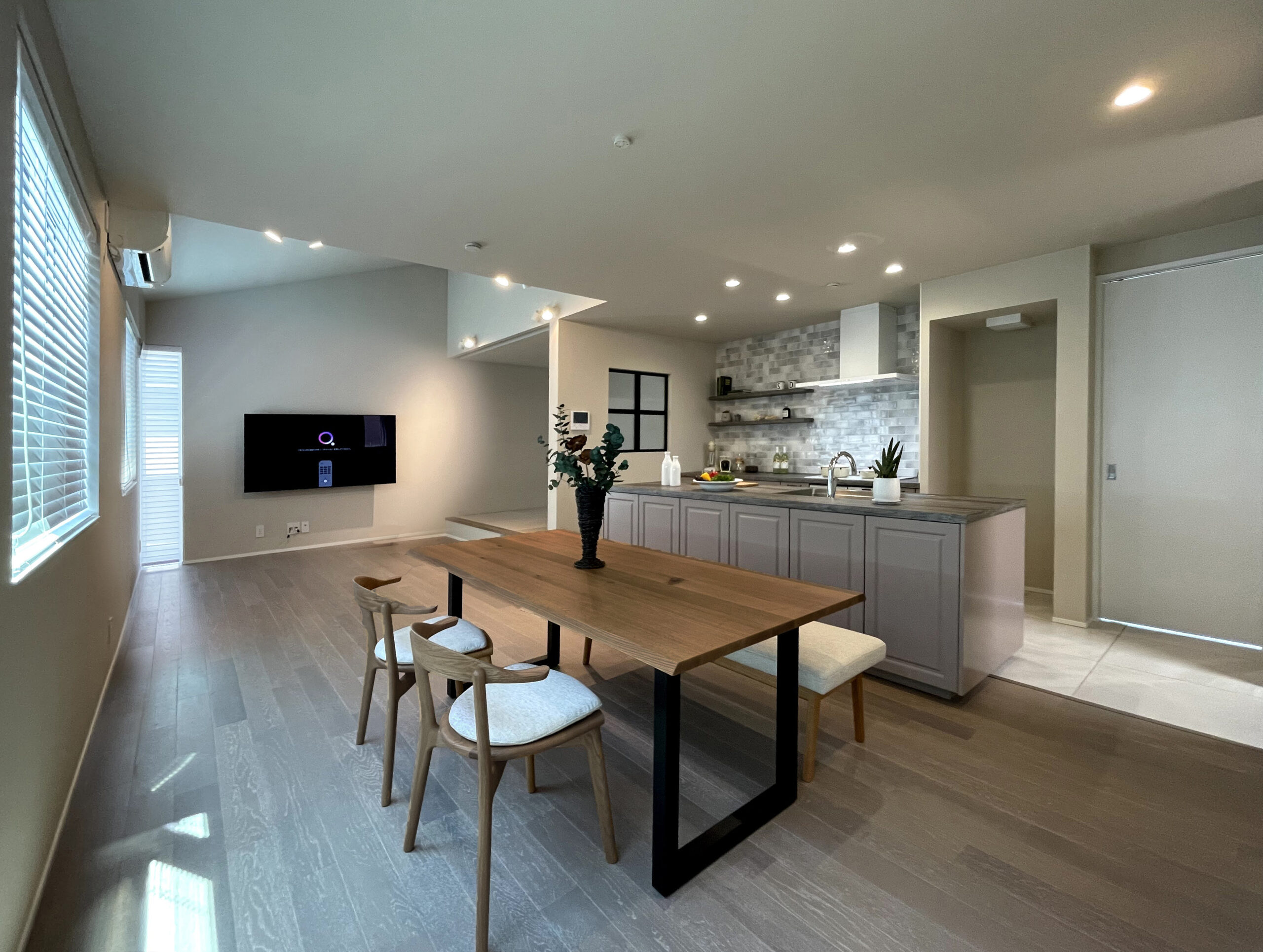 またLDKはオークをグレー色に塗装したオリジナルの床を実現しました。