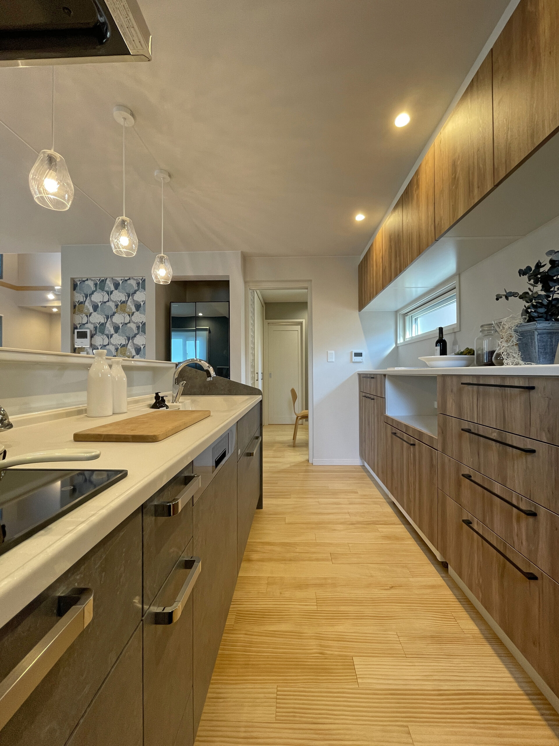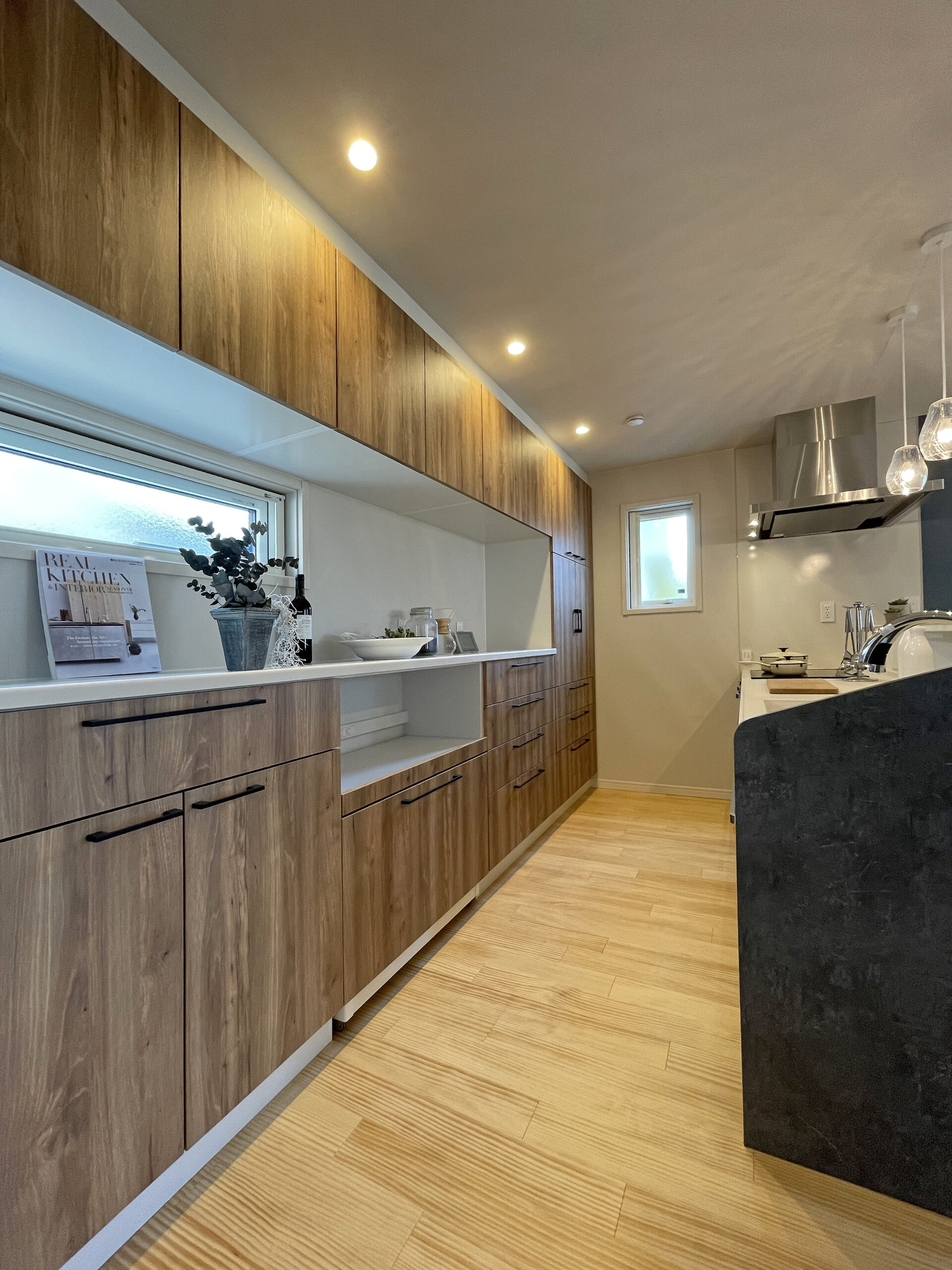 鉄骨階段×全面タイル床×キッチンハウス×モノトーンの暮らし
