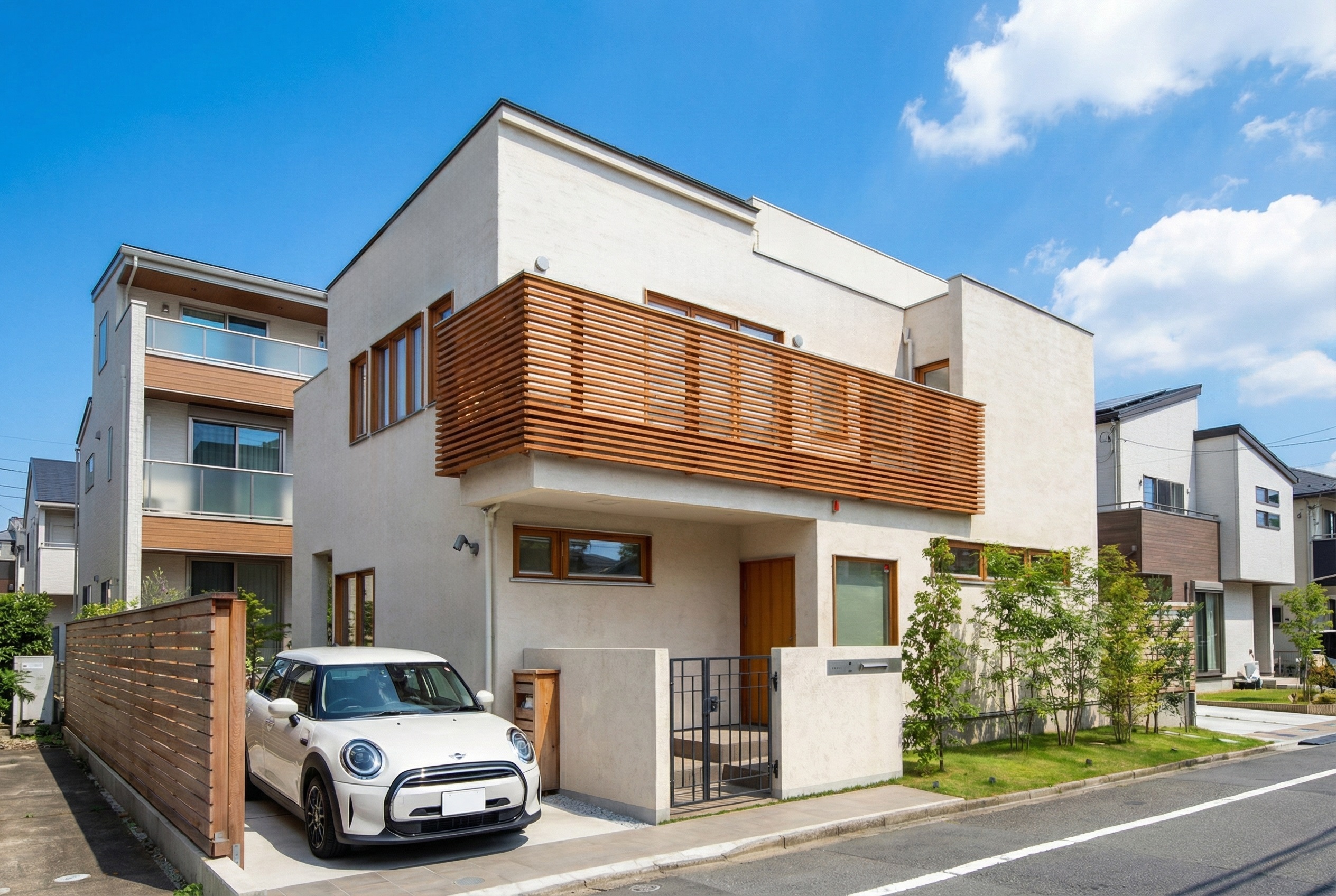 スウェーデン製木製トリプルガラスとウッドバルコニーがアクセントの北欧シンプルモダンな住まい